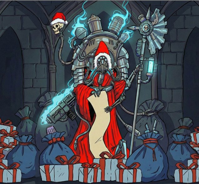 🎄 SALVANDO SANGUINALA 🎄 En el oscuro futuro, el Magus S-ANTA necesita escoltas. Misión: Cruzar la colmena en un tanque-trineo y entregar regalos a los huérfanos antes que los cultistas lo impidan. ¡Trae tu bólter! 🎲